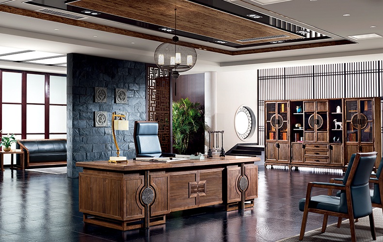 【红心家居】现代中式沙发简约皮艺沙发办公室沙发中式沙发茶几组合 1+1+方茶几
